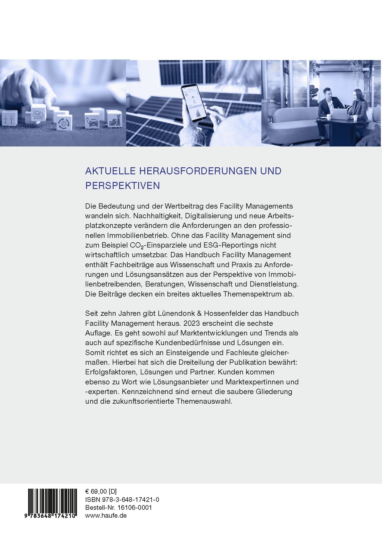 Das Handbuch Facility Management 2023 können Sie als Buch über den stationären Buchhandel (ISBN 978-3-648-17421-0) oder direkt hier bei Lünendonk bestellen. Über Haufe ist das Handbuch Facility Management zusätzlich als eBook bestellbar.