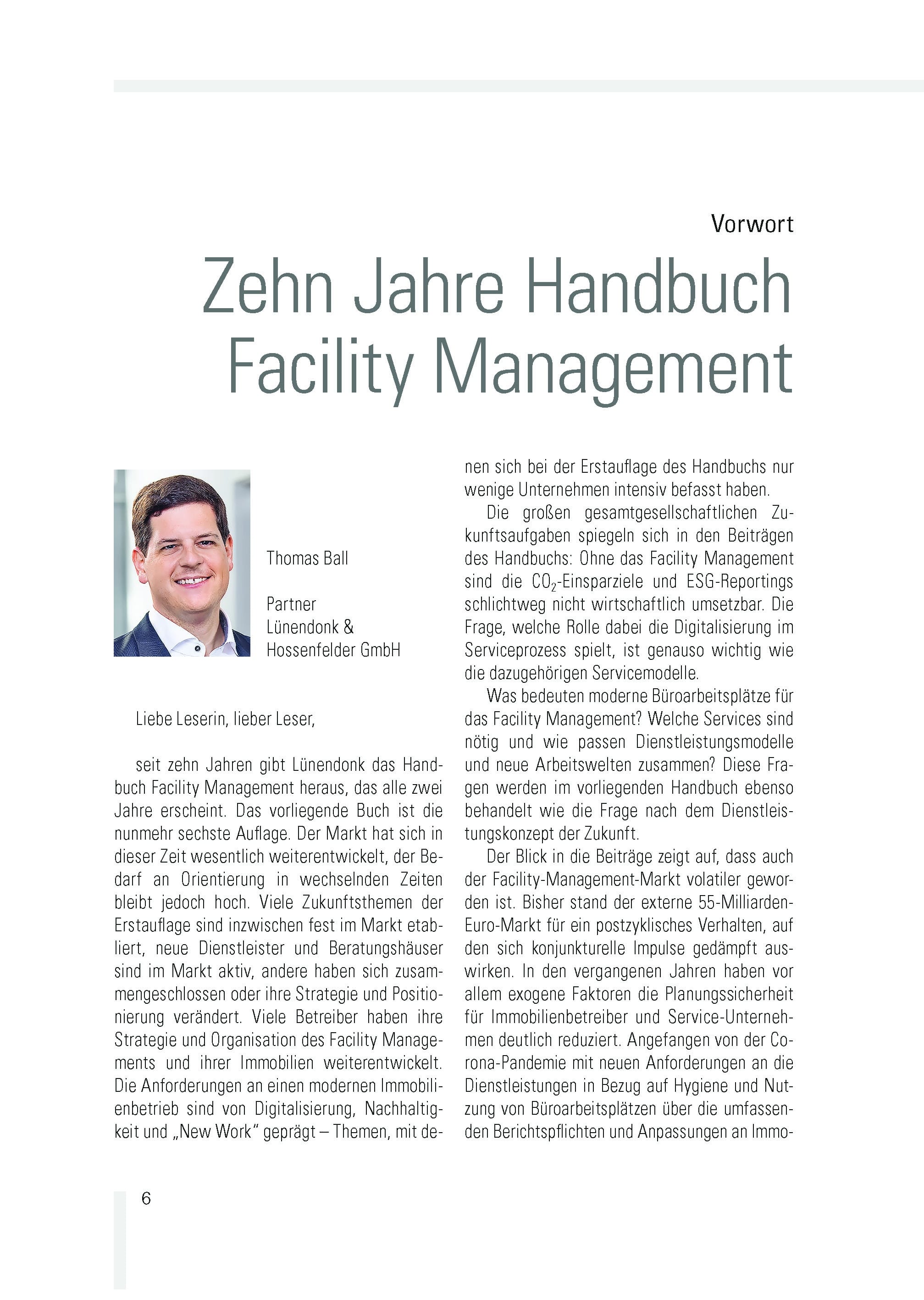 Das Lünendonk Handbuch Facility Management – der Dauerbrenner zum infrastrukturellen, technischen und kaufmännischen Gebäudemanagement mit aktuellen Trends, Zahlen und Entwicklungen der Facility-Management-Branche sowie Best Practices von Unternehmen. Ergänzt wird das Kompendium um ein detailliertes Verzeichnis führender Anbieter mit Kennzahlen und Kurzporträts.