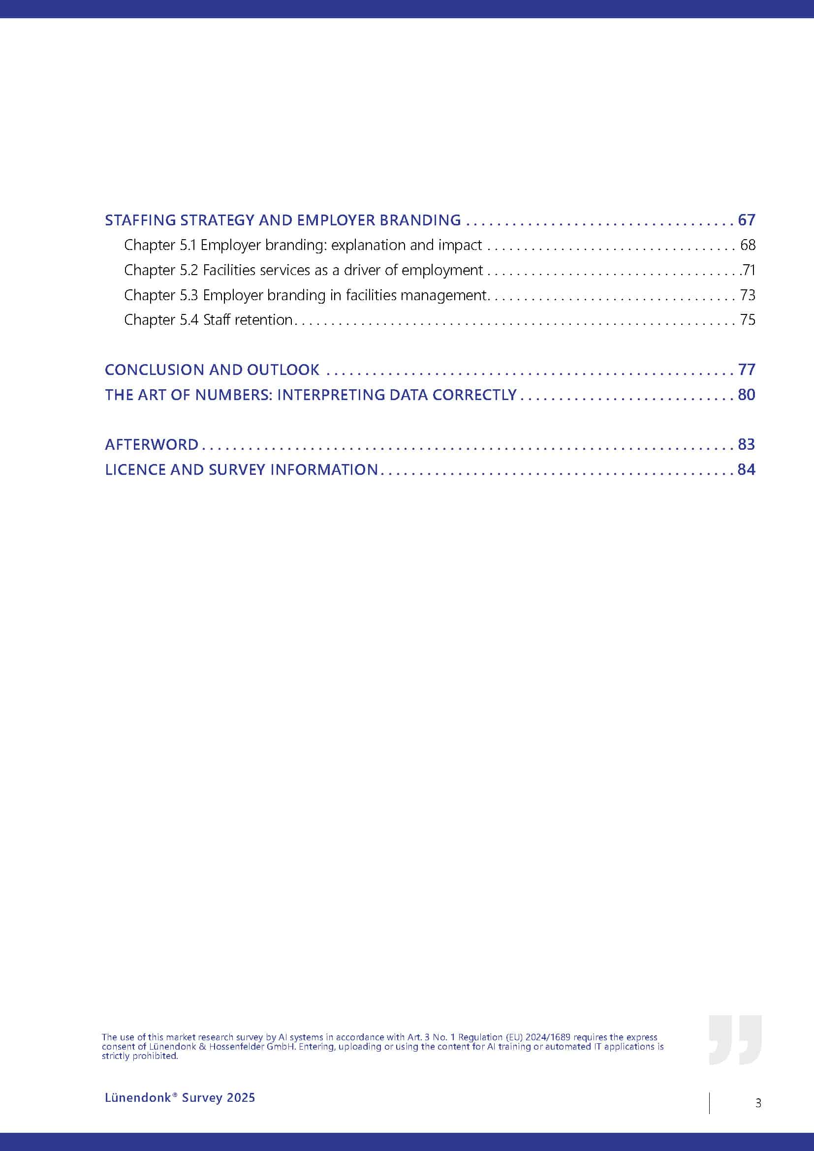 All results of the comprehensive survey of 73 facility service companies, included as a graphical evaluation and commented and categorized on the basis of many years of market observation