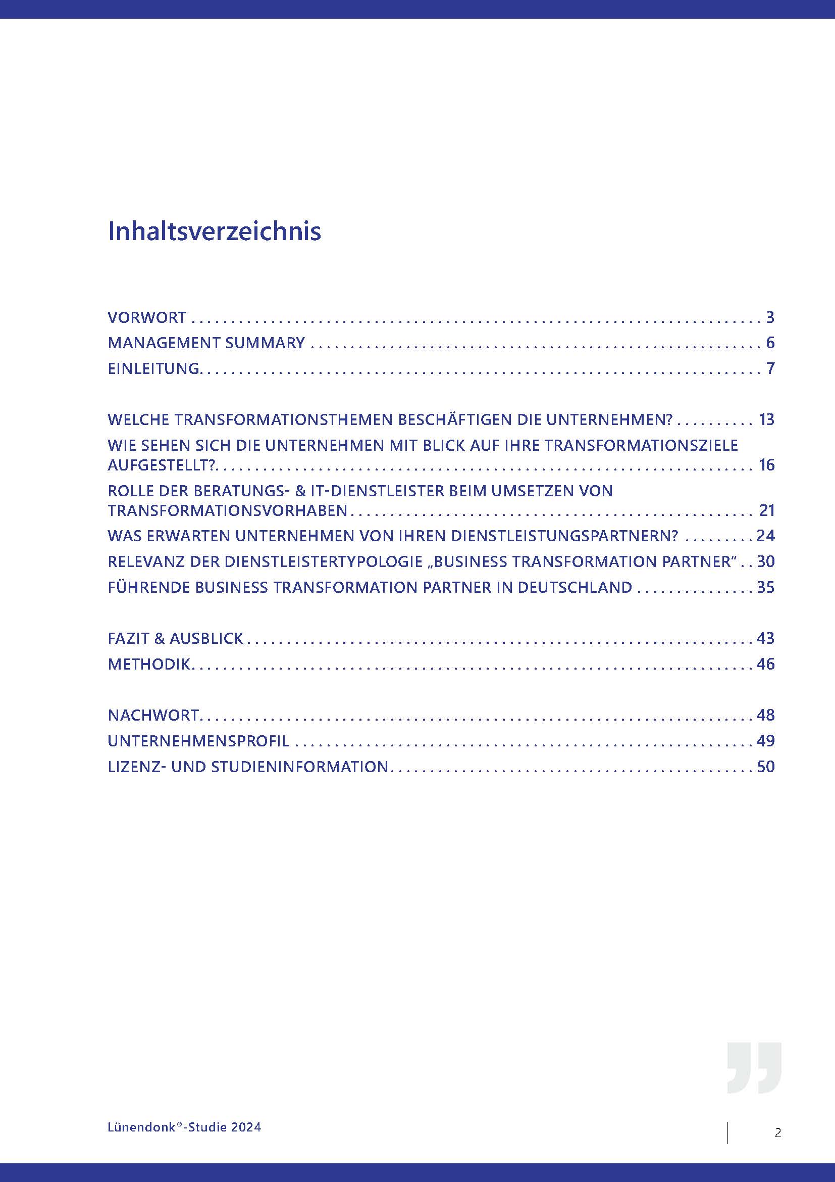 Lünendonk bietet seit mehr als 40 Jahren systematische Branchen- und Unternehmensanalysen sowie Beratung für ausgewählte B2B-Dienstleistungsmärkte. Als Navigator und Impulsgeber ist es unser Anspruch, unsere Kunden zu Spitzenleistungen zu führen und sie dabei zu unterstützen, neue Chancen zu entdecken sowie die richtigen Entscheidungen zu treffen.