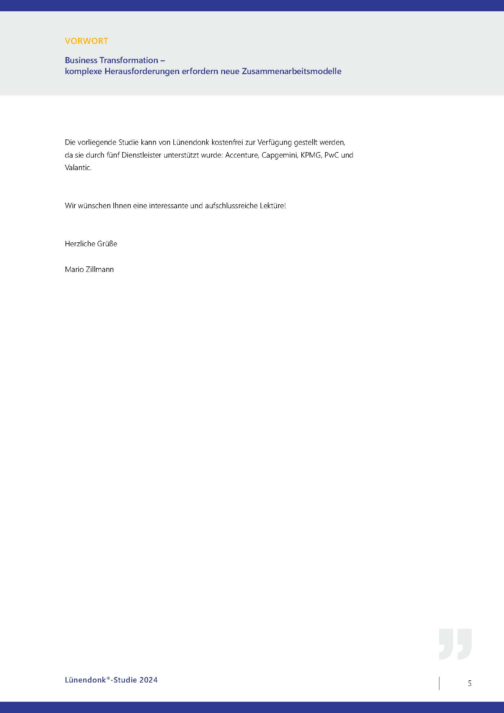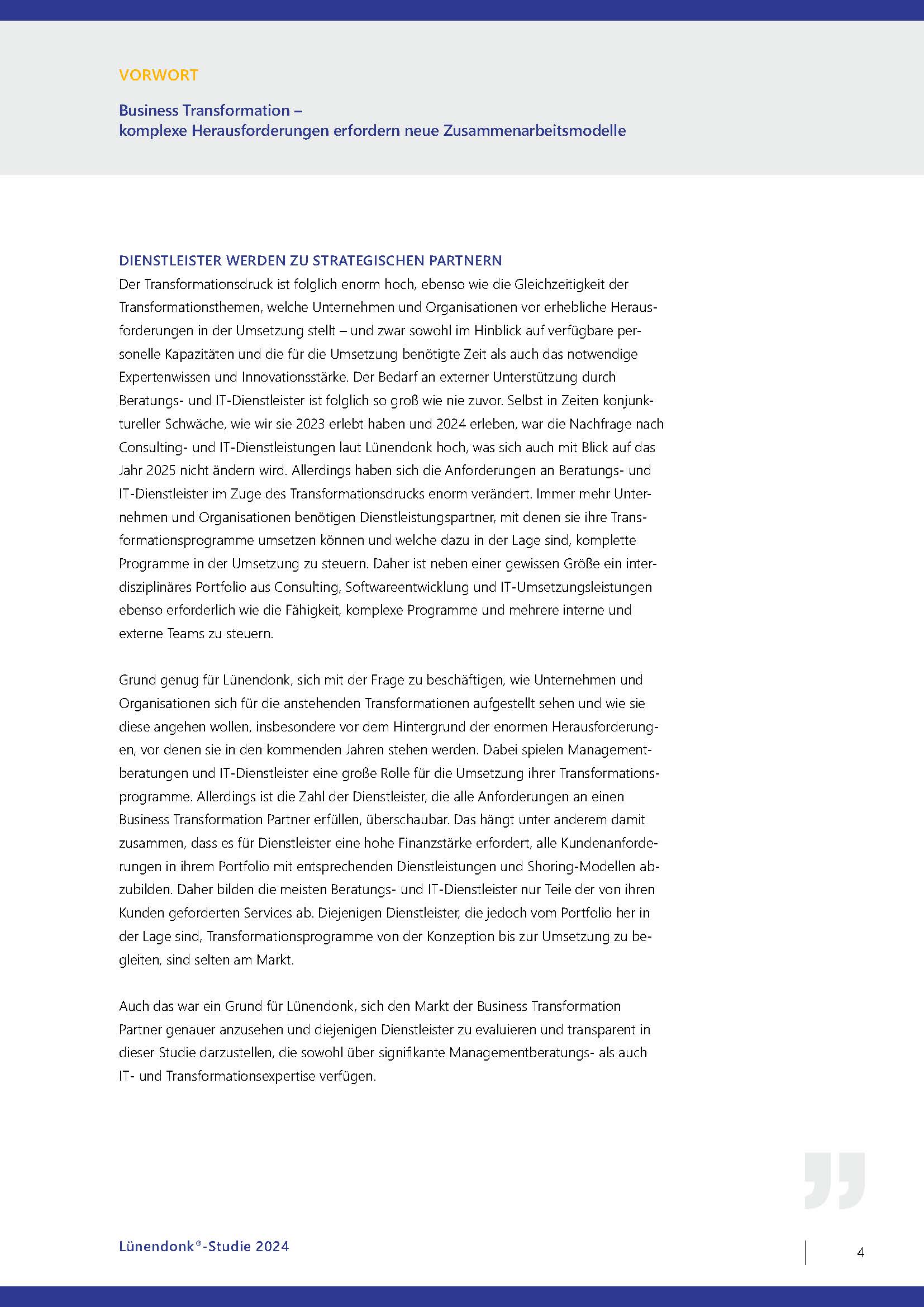 Lünendonk-Studie 2024: Business Transformation –komplexe Herausforderungen erfordern neue Zusammenarbeitsmodelle