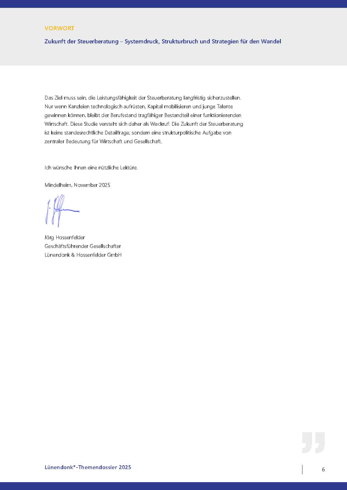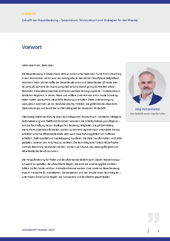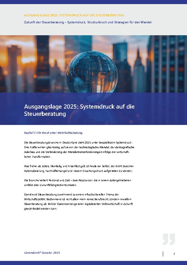 Lünendonk-Dossier 2025: Zukunft der Steuerberatung – Systemdruck, Strukturbruch und Strategien für den Wandel