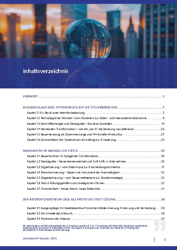 Wie steht es um die Zukunftsfähigkeit der Steuerberatung in Deutschland? Folgende Inhalte erwarten Sie im Dossier: