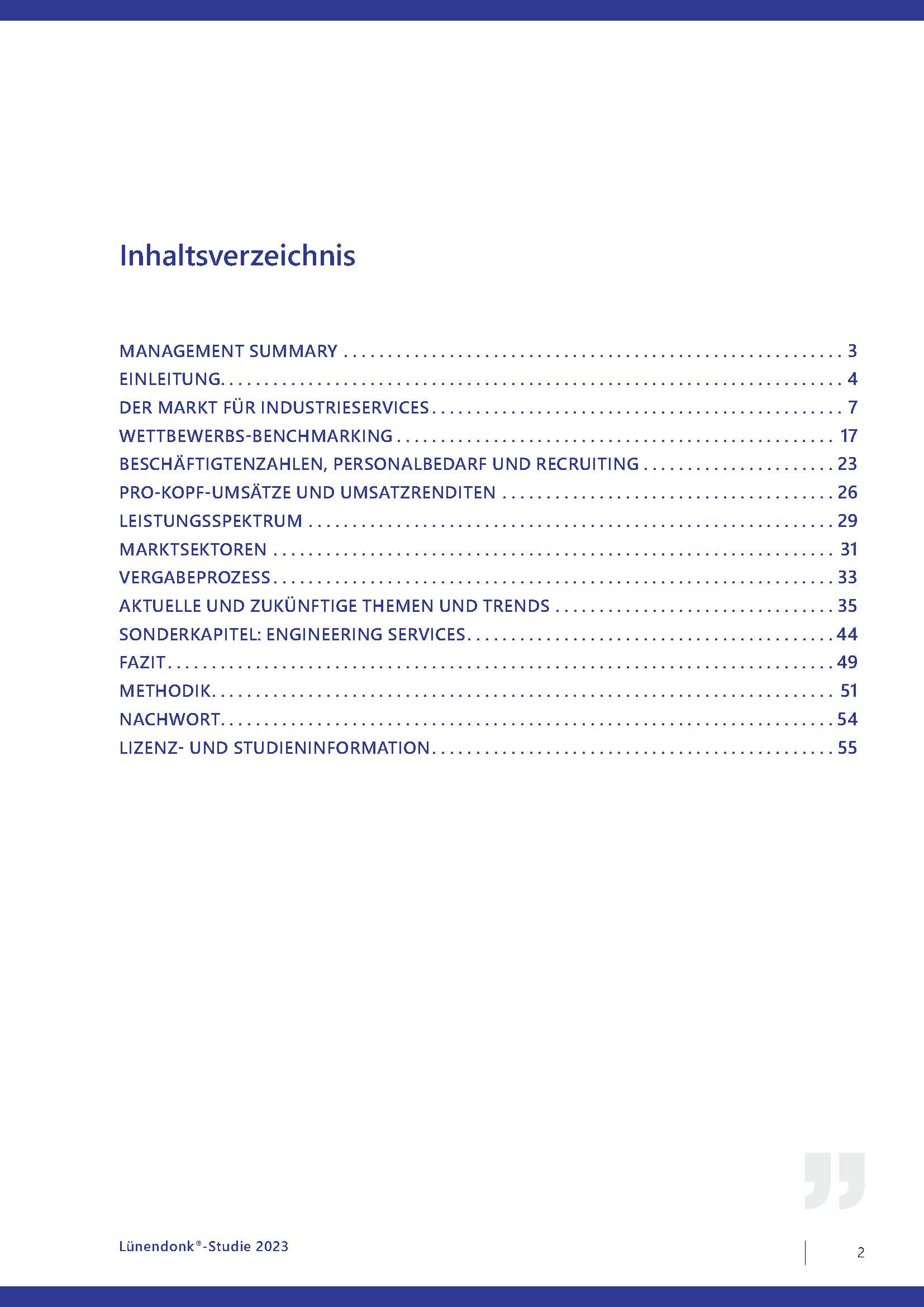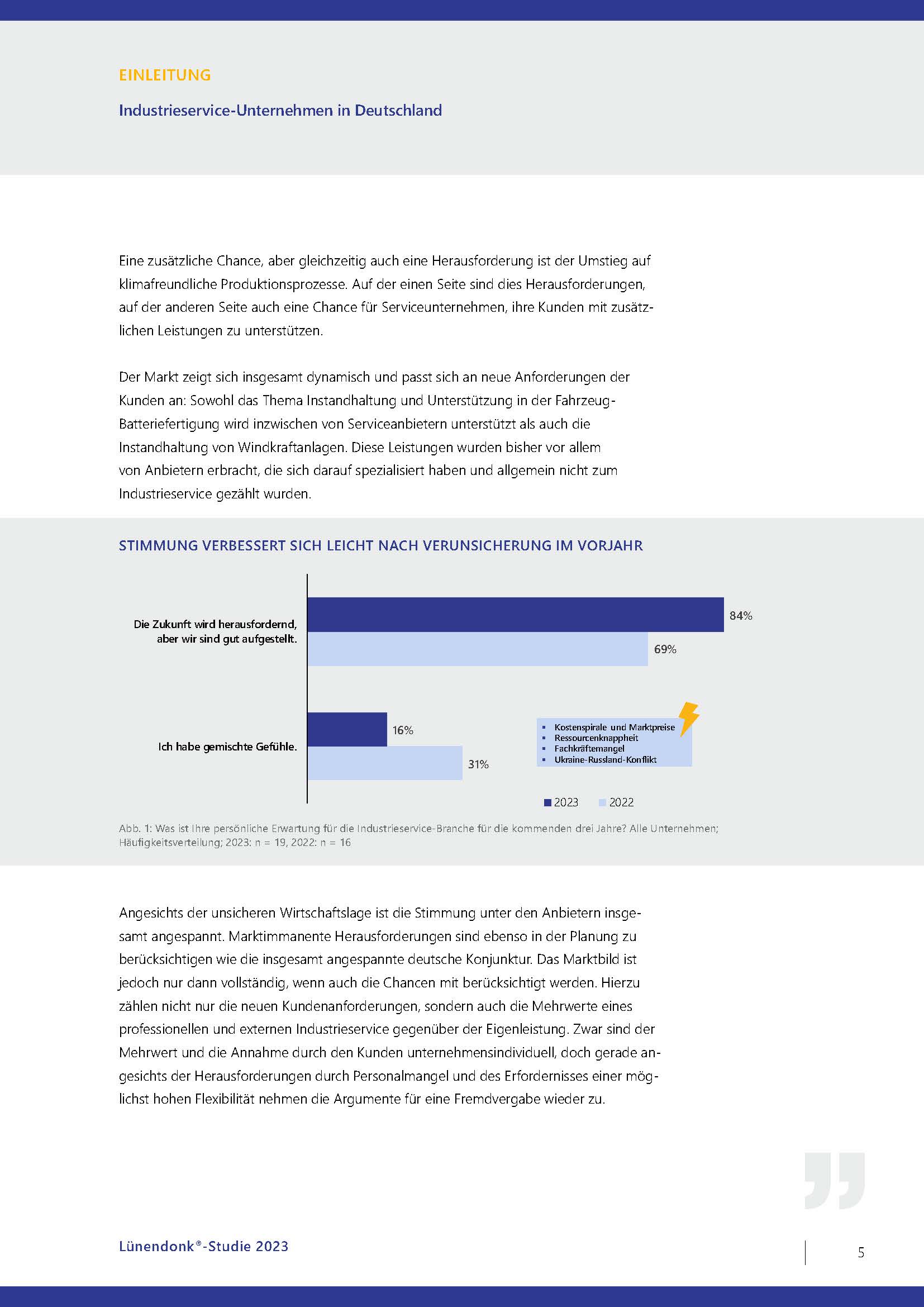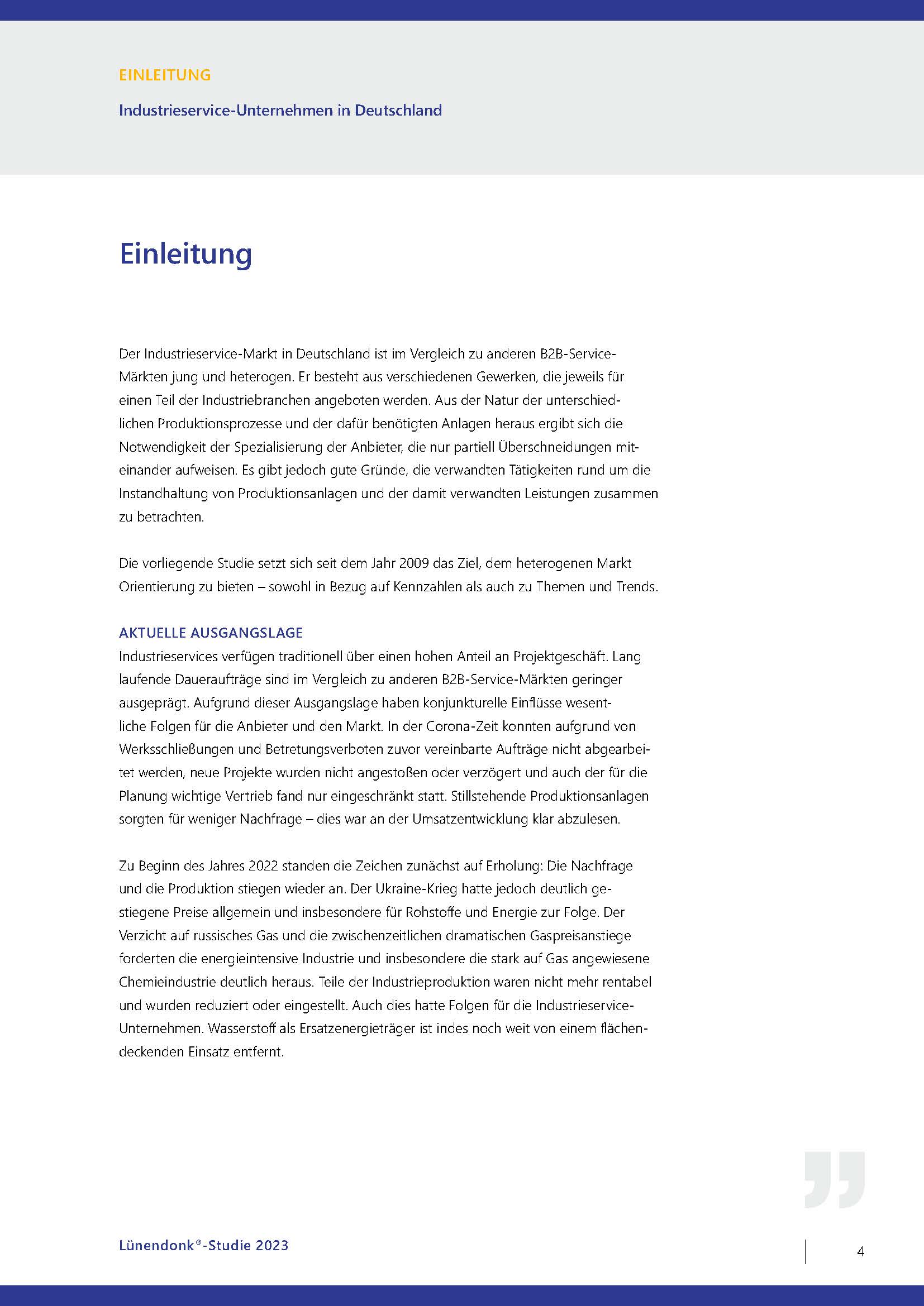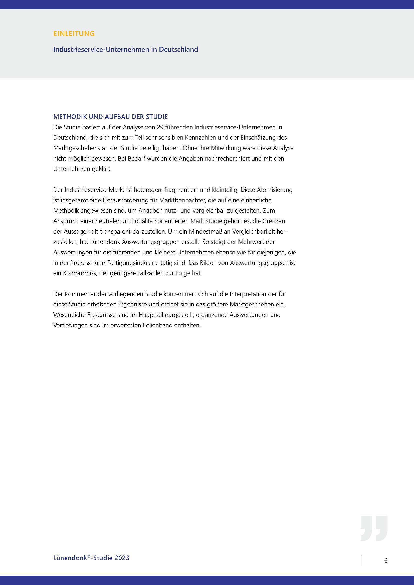 alle Ergebnisse der umfassenden Befragung von 29 Industrieservice-Unternehmen, enthalten als grafische Auswertung und auf Basis langjähriger Marktbeobachtung kommentiert und eingeordnet