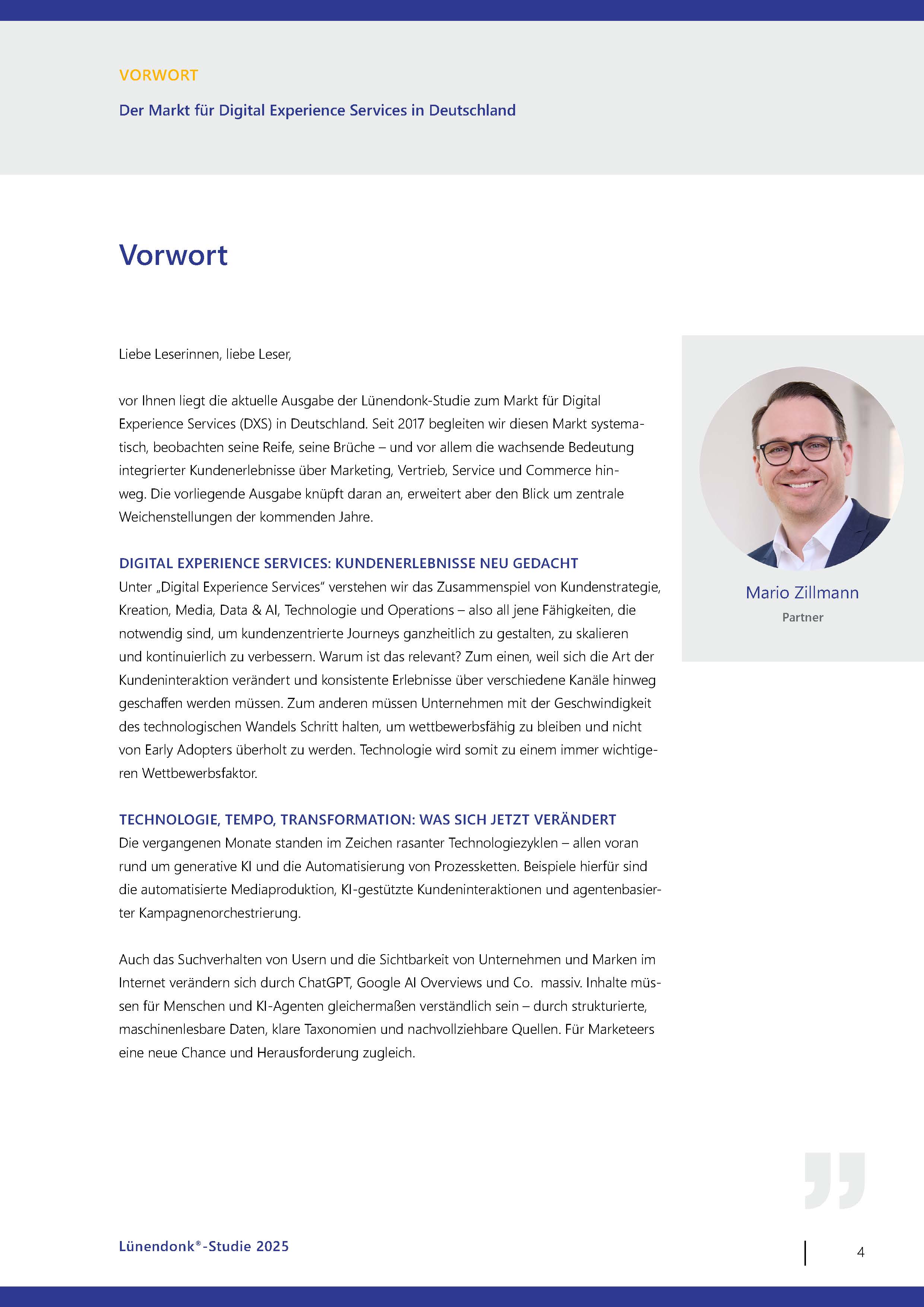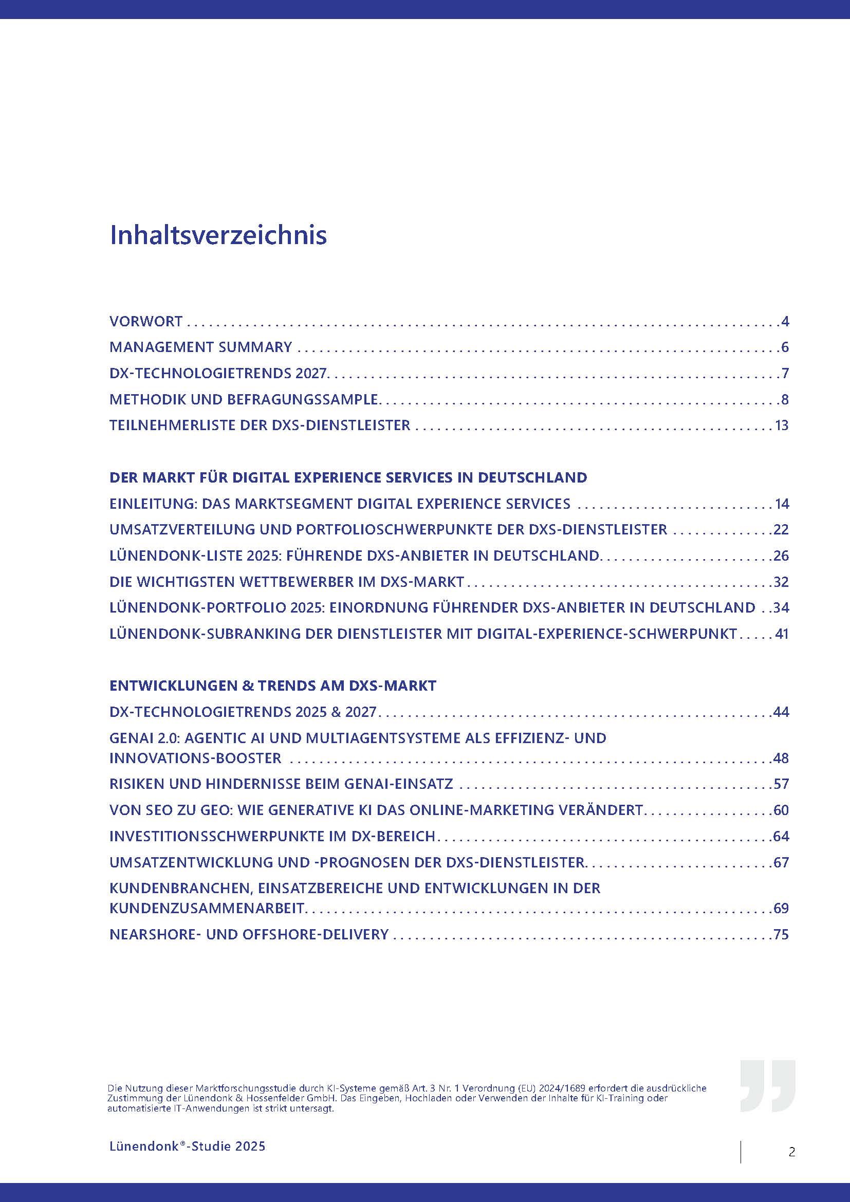 Generative KI verändert Marketing und Vertrieb grundlegend | DX-Fokusthemen 2026: Employee Experience, Digital Commerce und Social Commerce | Marktüberblick zu den führenden DXS-Dienstleistern in Deutschland | Neue Lünendonk-Studie 2025 ab sofort verfügbar